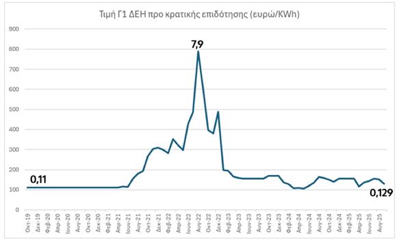 Η εξέλιξη του τιμολογίου Γ1 της ΔΕΗ χωρίς την κρατική επιδότηση.